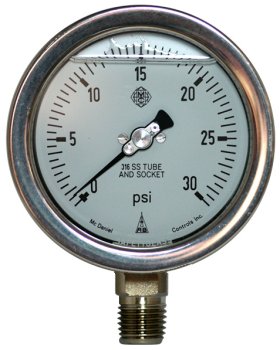 4" Dial Glycerin Filled, "1/4" or 1/2" Bottom Connect |
